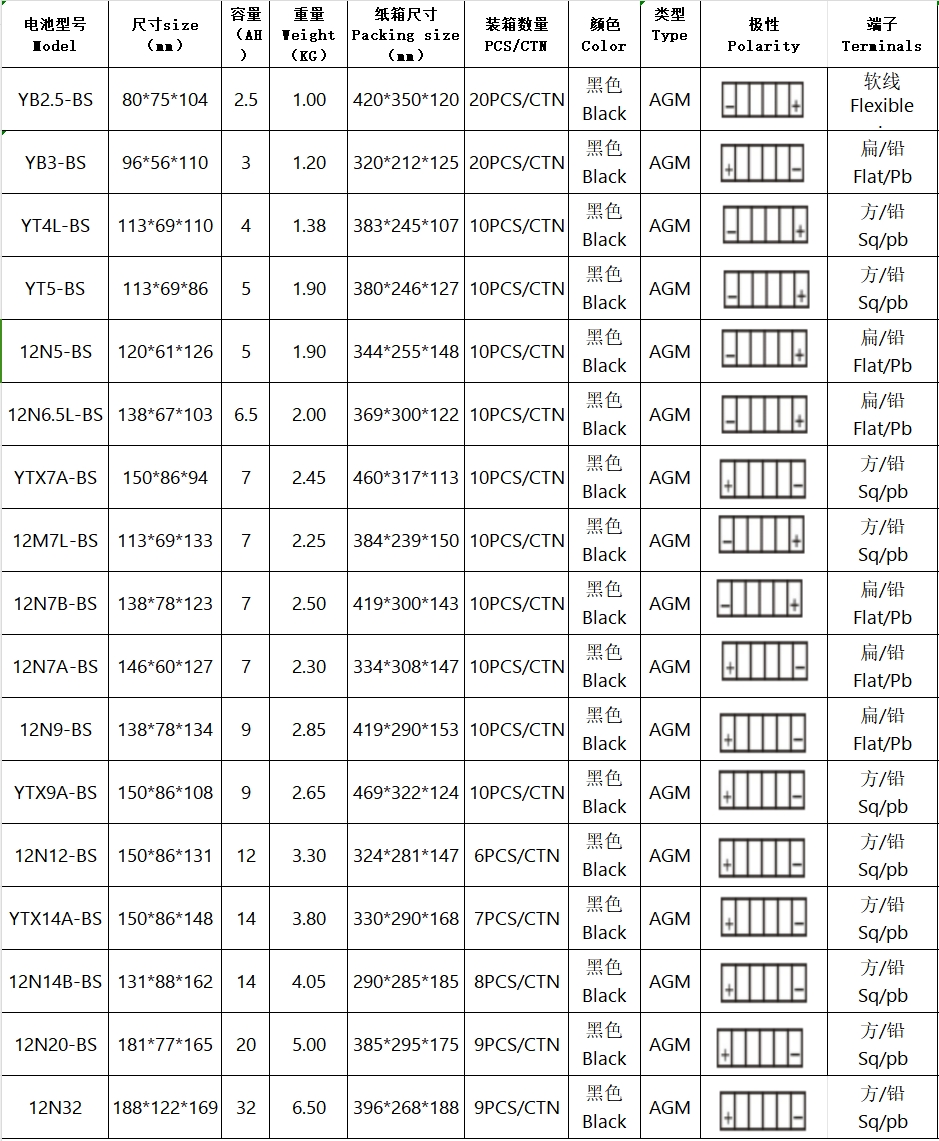 2、額定容量:2.5AH-32AH